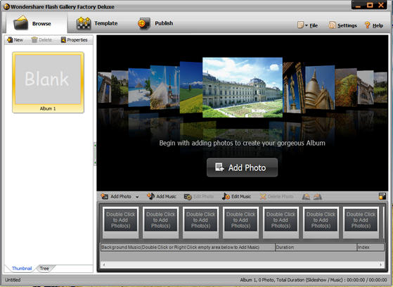 Wondershare Flash Gallery Factory - очень мощная и в тоже время простая в пользовании программа для создания Flash галереи. Wondershare Flash Gallery Factory включает в себя большой набор шаблонов, которые позволяют делать разнообразные презентации снимков, как для web дизайна, так и обычные flash слайд шоу. Цифровой фотоальбом, 3D flash галерея, web галерея, flash слайд шоу, а также flash баннеры, можно создать в Wondershare Flash Gallery Factory без навыков программирования.