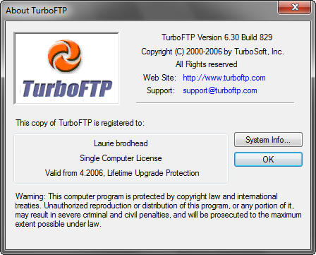 Скачать программу TurboFTP 6.30 Build 829 (7,29 МБ):