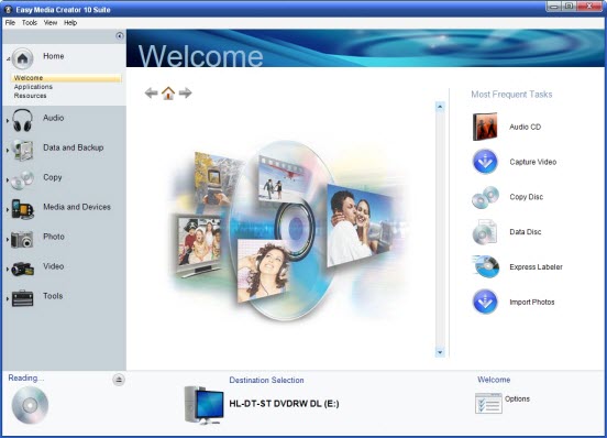 Полная защита диска и данных. Мощные записывающие и резервные компоненты Easy Media Creator дают возможность пользователям записывать, копировать и архивировать все виды цифровой информации и данных на CD и DVD, включая двухслойные DVD. Теперь DVD-фильмы можно легко сжать с 9 ГБ до стандартного размера 4,7 ГБ.