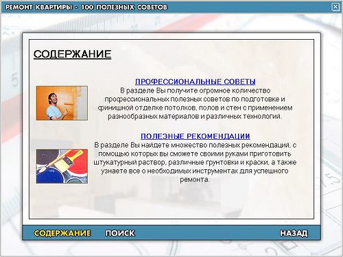 В энциклопедии Вы получите огромное количество профессиональных полезных советов по подготовке и финишной отделке потолков, полов и стен с применением разнообразных материалов и различных технологий. Также здесь Вы найдете множество полезных рекомендаций, с помощью которых вы сможете своими руками приготовить штукатурный раствор, грунтовки и краски, а также узнаете все о необходимых инструментах для успешного ремонта.
