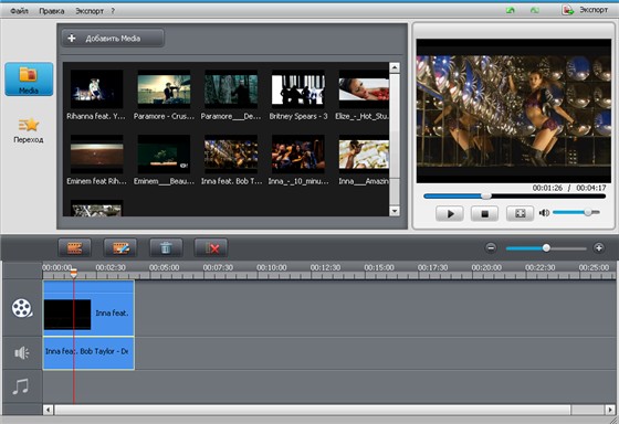 - Выбор из 48 эффектов переходов между видео сегментами