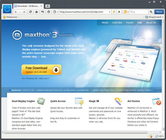 Скачать программу Maxthon 3.0.19.1000 Final (15,45 МБ):