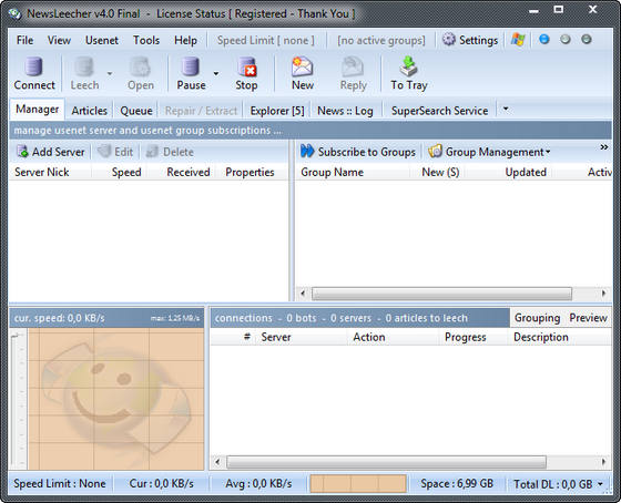 NewsLeecher - загрузчик файлов (видео, картинки, MP3 файлы и программы) из Usenet. Программа поддерживает уникальную систему загрузки, которая делает его одним из самых быстрых загрузчиков usenet, таких как NewsBin, GrabIt и XNEWS. NewsLeecher использует встроенные инструменты для соединения файлов из отдельный частей и их декодирования, что позволяет загружать из разных серверов usenet одновременно.