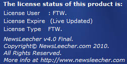 If you install this release on top of an earlier release of NewsLeecher, it is strongly recommended that you make a backup of your NewsLeecher settings and data first. Also, since this release of NewsLeecher uses a new cache system over the earlier NewsLeecher V3.9 Final, old group caches and queues will not be compatible. This isn't a problem with earlier NewsLeecher V4.0 betas though. Enjoy the final release, and look out for the NewsLeecher V5.0 betas, which we've already begun working on.