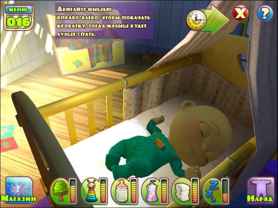Игра о карапузах и для карапузов! Симпатичных, толстеньких, щекастых пупсов любят все маленькие девочки! И не зря: ухаживая за игрушечными младенцами, малышки учатся быть заботливыми и внимательными, как самые настоящие мамы. Теперь в очаровательном трехмерном симуляторе ухода за малышом на их попечении будет не просто кукла, а славный виртуальный карапуз! Он совсем не игрушечный, и кормить, купать, переодевать, укладывать спать его нужно не реже, чем настоящего ребенка, а уж играть с ним – одно удовольствие! По мере того как карапуз растет, увеличивается и сложность игры, а заработанные очки можно тратить на приобретение детского питания, одежек и игрушек. Игры, пазлы и раскраски разовьют не только компьютерного малыша, но и его маленькую «няню» – они способствуют тренировке мышления, музыкального слуха и чувства цвета.