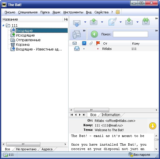 The Bat! – общепризнанная система обработки электронных сообщений, которая прекрасно совмещает в себе все качества, необходимые опытному пользователю. Интуитивный интерфейс позволяет пользователям The Bat! приступить к работе сразу после установки. Эффективный механизм фильтрации и сортировки помогает обрабатывать огромные потоки входящей почты, с которыми не справляются другие программы. Системные администраторы по достоинству оценят возможность установки в пакетном режиме, которая позволяет лично контролировать процесс инсталляции The Bat!. Все эти функции, наряду с полностью настраиваемыми инструментами автоматической обработки, избавляют пользователей от рутинной работы.