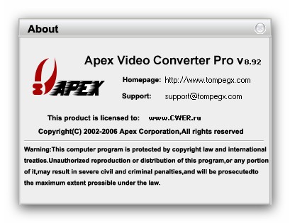 Скачать программу Apex Video Converter Pro 8.92 (15,09 МБ):