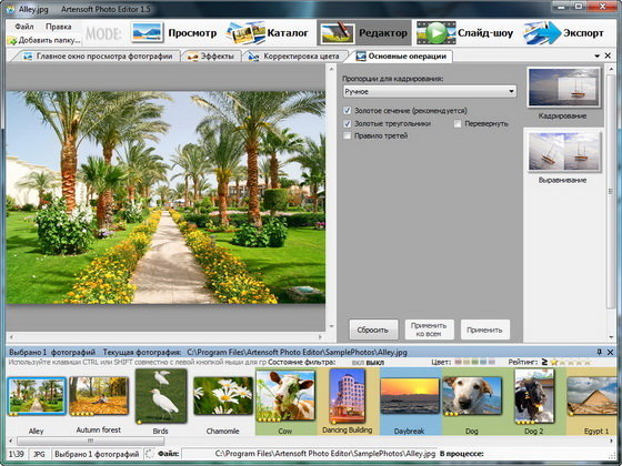 Artensoft Photo Editor - полнофункциональный и простой в использовании фоторедактор позволит Вам загружать новые снимки, просматривать, конвертировать, пакетно обрабатывать и редактировать цифровые изображения, а также насладиться приятным слайдшоу из выбранных фото. Данный редактор поддерживает множество форматов цифровых изображений, в том числе и RAW.