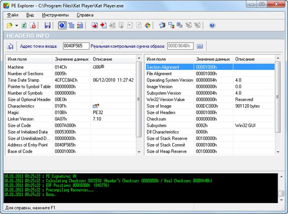 PE Explorer - это программа для просмотра, изучения и анализа внутреннего устройства исполняемых файлов. С помощью PE Explorer вы можете исследовать как свои собственные программы и библиотеки, так и приложения от сторонних разработчиков, к чьим исходным текстам у вас нет доступа. Яркий пример - изучение устройства вирусов, троянов и других вредоносных программ. PE Explorer позволяет открывать, смотреть и редактировать 32-битные PE (Portable Executable) файлы для Windows любого типа: EXE, DLL и ActiveX, SCR (скринсейверы), CPL (Control Panel Applets), SYS, DRV, MSSTYLES, MUI, BPL, DPL, и многие другие. PE Explorer предоставляет вам возможность посмотреть изнутри, как работает программа или библиотека, провести статический анализ файла (т.е. без исполнения потенциально опасного кода) и собрать всю возможную информацию, содержащуюся внутри файла. PE Explorer берёт на себя весь поиск и сбор различных значений и характеристик файла, оставляя вам лишь минимальный объём работы для проведения анализа. Открыв файл в PE Explorer, вы сразу увидите сводную таблицу значений из заголовков PE файла, список импортируемых и экспортируемых функций, названия и характеристики секций, наличие или отсутствие цифровой подписи, а так же все ресурсы, содержащиеся в файле.