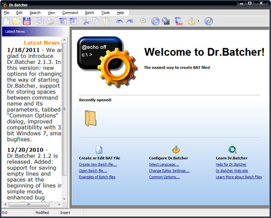 - New options for changing the way of starting Dr.Batcher, support for storing spaces between command name and its parameters, tabbed "Common Options" dialog, improved compatibility with 32-bit Windows 7, small bugfixes.