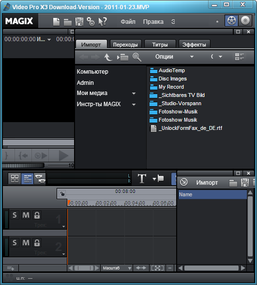 • Поддержка файлов проектов MAGIX Movie Edit Pro