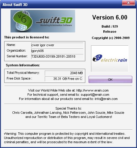 Скачать программу Electric Rain Swift 3D 6.0.92 (48,92 МБ):