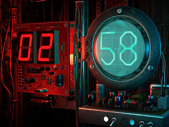 Скринсейвер, показывающий эволюцию часов с цифровым дисплеем, начиная от аналоговых перекидных часов 50-ых годов до ультрасовременных часов с LED-дисплеем. Также является анимированными обоями рабочего стола.