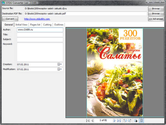 STDU Converter — конвертор DjVu в PDF всего в два клика. Вы можете конвертировать только часть книги или ее целиком, а также построить свое дерево документа на выходе.