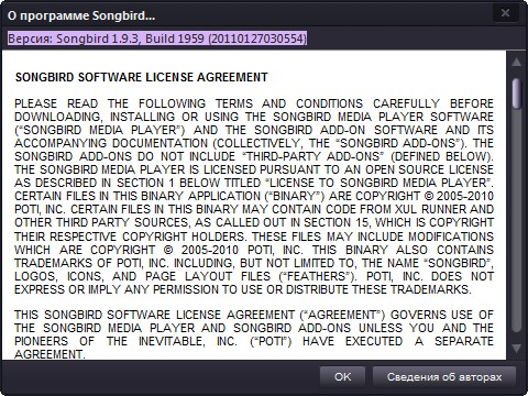 Songbird - aудиоплеер, основанный на движке популярного браузера Firefox. Ориентирован на воспроизведение музыкальных файлов не только с жесткого диска, но и из сети. По замыслу разработчиков, Songbird - это не столько аудиоплеер, сколько музыкальный веб-браузер... Songbird умеет работать с разнообразными форматами музыкальных файлов и музыкальными сервисами. Имеется возможность создания мультимедийной библиотеки, которая поможет организовать все музыкальные файлы компьютера в единый архив, при этом в нее можно включать и композиции, находящиеся в активных сетевых плейлистах.