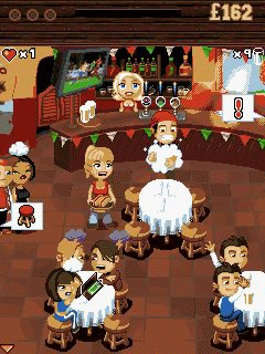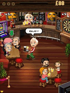 Будьте быстры и хорошо обслуживайте клиентов чтобы заработать денег. Открывайте много баров по всей Великобритании чтобы заработать больше денег! Вам нужно будет обслуживать клиентов, принимать заказы и реагировать на их настроение. Вы можете улучшить место (купить новые таблицы, изменить декораций и т.д.) или улучшить обслуживание. Сделайте свой бар лучшим! Размеры экранов: 128х128, 128х160, 176х208, 176х220, 240х320.