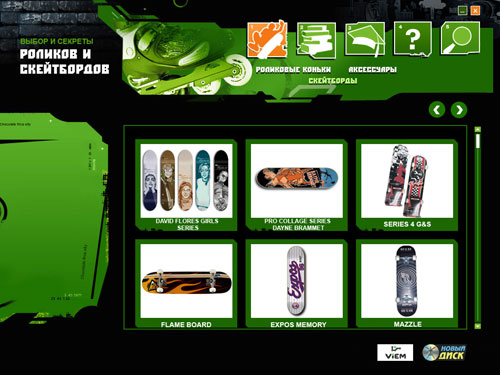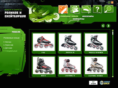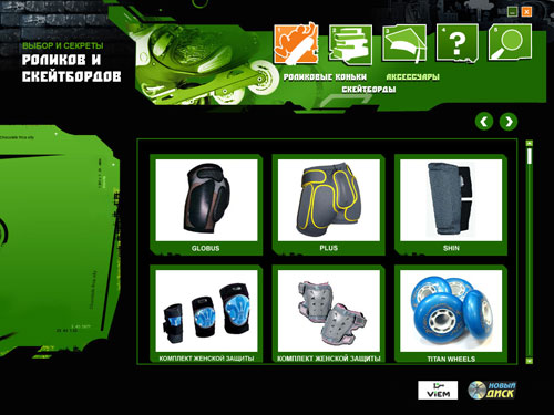 Все, что необходимо знать начинающему роллеру или скейтбордеру, – на одном диске! В каталогах диска представлены описания и подробные характеристики более 100 моделей роликовых коньков, 70 моделей скейтбордов и различных аксессуаров.