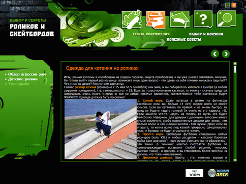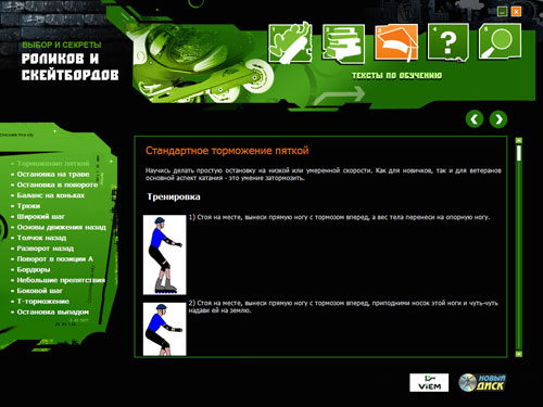 Кроме того, здесь вы найдете подробные статьи, обзоры с описаниями классики и последних новинок, советы, касающиеся выбора снаряжения. 15 уроков катания помогут любому новичку уверенно встать на колеса. Диск снабжен удобной системой как локального, так и глобального поиска по любым параметрам – от бренда до ценовой категории.