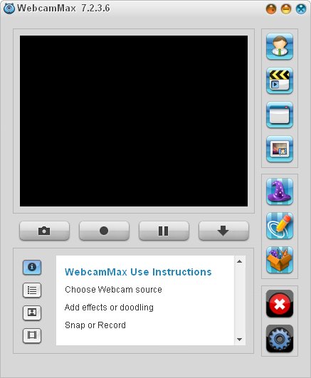 WebCamMax - утилита для работы с веб-камерой. Программа, добавляющая изумительные видеоэффекты на все вебкамеры, даже без реальной камеры. Программу можно использовать по умолчанию в таких приложениях, как ICQ, AIM, MSN, Camfrog, Skype, Paltalk, Yahoo, ANYwebcam, Stickam. Можно настроить WebcamMax Full так, чтобы она начинала функционировать и вести трансляцию с камеры только в том случае, когда объектив зафиксирует движение.