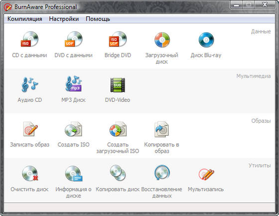 BurnAware Professional - относительно небольшая и простая в использовании программа для записи информации и музыкальных композиций на CD, DVD, Blu-Ray и HD-DVD диски, которая пригодится как опытным пользователям, так и новичкам. BurnAware поддерживает работу со всеми типа оптических дисков (включая CD-R/RW, DVD-R/RW, DVD+R/RW, BD-R/RE, HD-DVD-R/RW и DVD-RAM) и аппаратными устройствами записи. Утилита поддерживает создание образов, способна писать мультисессионные диски, имеет опцию проверки записанного содержимого, работает под операционными системами Windows 98/ME/NT/2000/XP/Vista/7 (32/64-bits).