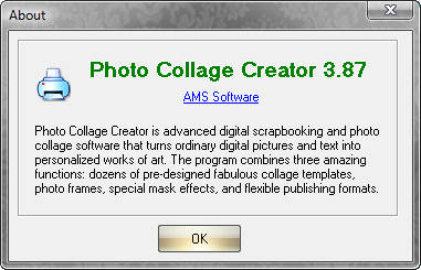 Photo Collage Creator - программа для создания фото коллажей и скрапбуков, которая превращает обычные цифровые фотографии и текст в собственное произведение искусства. Программа сочетает в себе десятки заранее приготовленных шаблонов коллажей, более 50 фото рамок, несколько специальных эффектов и гибкие издательские форматы. Photo Collage Creator включает в себя все нужное для превращения фотографий и текста в потрясающие коллажи и создания великолепных скрапбуков для печати, добавления в скрапбук, обмена с друзьями и размещения вашего произведения на стене. Программа позволит вам собрать ваши драгоценные фотографии в художественный сборник, полностью выражая ваши идеи. Использование дополнительных возможностей этой программы поможет достичь вам ослепительных результатов.