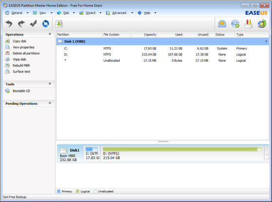 EASEUS Partition Master — удобная программа для разбиения жёсткого диска на разделы, которая не только упростит рутинные задачи, но и поможет вам редактировать разделы диска и управлять ими. А именно — быстро и с лёгкостью создавать, удалять и форматировать разделы, изменяя их размер и расположение без потери данных, с использованием свободного места на диске. С помощью этой программы, вы можете создавать, удалять, форматировать разделы на вашем жестком диске быстро и просто. К наиболее привлекательной функции относится способность изменения размера/перемещение ваших разделов, используя свободное место, без удаления данных.