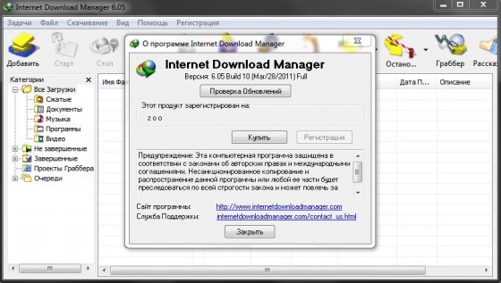 Скачать программу Internet Download Manager 6.05 Build 10 Final Retail Preactivated by Zoo (4 МБ):