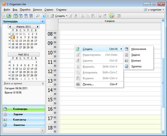 C-Organizer Lite - красивый и мощный персональный информационный менеджер. Эта программа поможет Вам организовать и спланировать Вашу работу и личную жизнь. Это планировщик, адресная книга, менеджер паролей и закладок, записная книжка и календарь событий, объединенные в одну мощную и удобную программу.