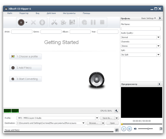 Как профессиональное ПО для создания рипов CD, Xilisoft CD Ripper специализируется на переводе и конвертации CD в MP3, WAV, WMA, OGG, MP2, VQF и APE всего несколькими кликами. Программа также может осуществлять конвертацию между файлами популярного аудиоформата. Вы можете извлечь информацию о диске с удалённого CDDB и спокойно редактировать ID3-тэги, чтобы разнообразить ваши музыкальные данные.