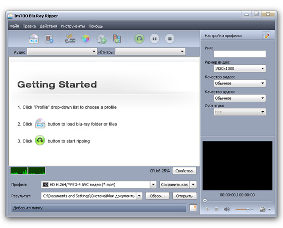 ImTOO Blu Ray Ripper - это профессиональный Blu-ray риппер и Blu-ray M2TS видео конвертер, является идеальным решением для копирования и конвертирования Blu-ray фильмов. Рип Blu-ray фильмов в HD видеоформаты (H.264/MPEG-4 AVC, Apple TV H.264 720P, HD WMV, MPEG-2/MPEG-4 TS HD видео) и конвертирование Blu-ray M2TS видео в наиболее распространенные видеоформаты (AVI, MPEG, WMV, DivX, MP4, H.264/AVC, RM, MOV, XviD, 3GP, FLV). Вы даже можете делать рип Blu-ray аудио в MP3, WMA, AAC, WAV, OGG, FLAC, APE, M4A, RA, AC3, MP2, AIFF, AMR, и SUN AU формат.