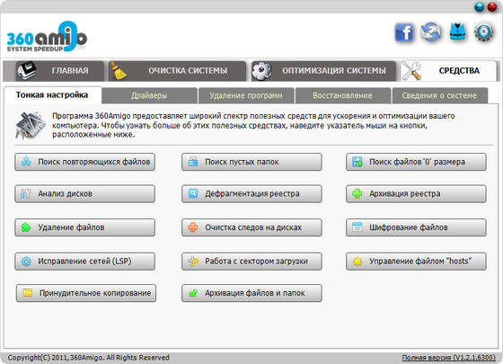 360Amigo System Speedup - инструмент, который поможет вам оптимизировать работу компьютера и исправить ошибки в его работе. В программу 360Amigo System Speedup входят инструменты для очистки системы, оптимизации системы и целый набор инструментов, созданных специально для улучшения работы компьютера.