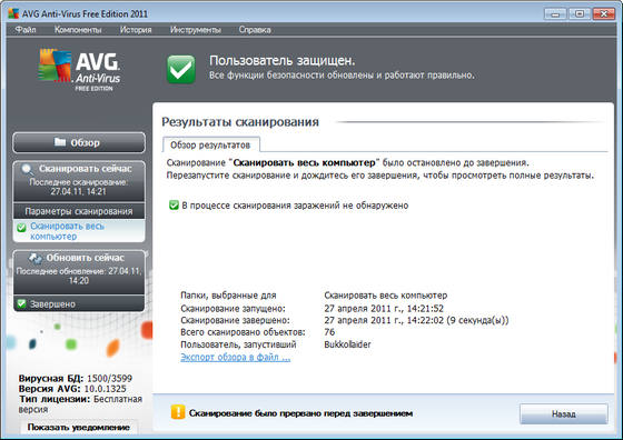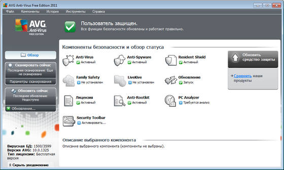 AVG Anti-Virus Free Edition 2011 обеспечивает следующее: