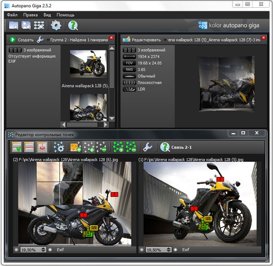 Autopano Giga - удобная утилита для быстрого, полуавтоматического создания из фотографий - панорам, гигапиксельных изображений и виртуальных туров. Данная программа автоматически определяет границы фотографий и помещает их рядом друг с другом так, что шов становится незаметен. В программе имеются инструменты для коррекции цвета на фотографиях, при помощи которых обеспечивается единая цветовая гамма на всей панораме. Кроме этого, можно устранять недостатки, связанные с разной выдержкой.