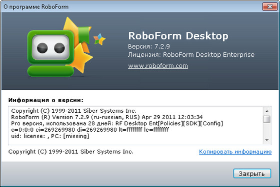 Скачать программу AI RoboForm Enterprise 7.2.9 Final (7,26 МБ):