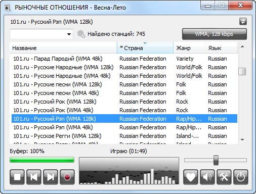 RadioSure - бесплатный радиоплейер, поддерживающий огромное количество радиостанций и предоставляет вам исключительно удобные возможности по прослушиванию интернет радио. Поддерживаются скины, наиболее распространенные аудио форматы, так же RadioSure характерно - быстрая работа и не большое потребление трафика.