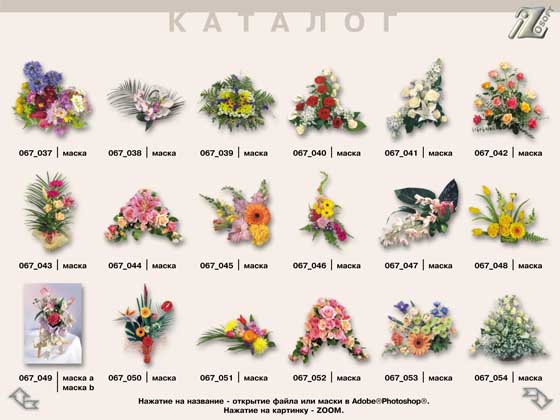 Незаменимый клипарт для профессионального дизайнера содержит высококачественные фотографии букетов цветов в формате JPG и альфа каналы к ним в файлах PSD. Также в архив включен PDF-файл с предпросмотрами и возможностью загружать непосредственно в Photoshop как фотографии букетов, так и маски к ним.