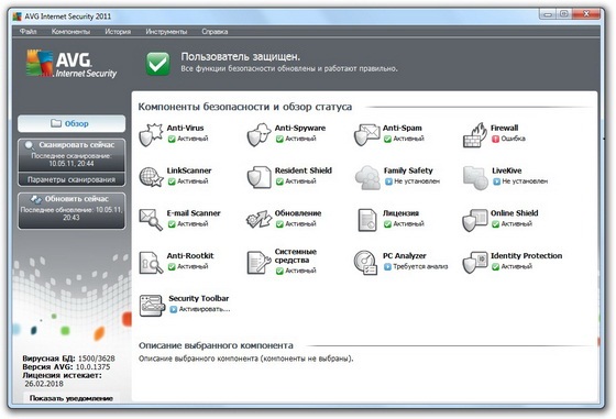 AVG Internet Security - мощный пакет приложений компании GrisоfТ для защиты компьютера от всевозможных сетевых угроз: вирусов, троянов, червей, шпионского и рекламного обеспечений, хакеров и спама.