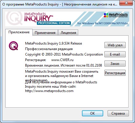 Скачать программу MetaProducts Inquiry Professional Edition 1.9.534 (4,32 МБ):