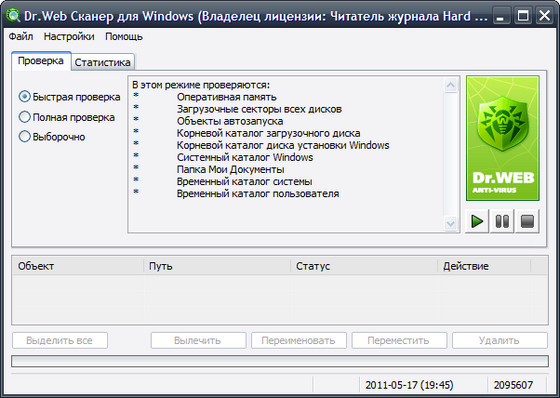 Всего вирусных записей 2 095 607 за 17.05.2011