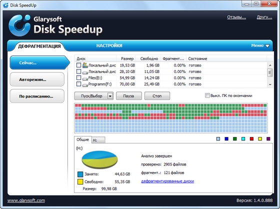 Glarysoft Disc SpeedUp - это мощная и быстрая утилита для дефрагментации и оптимизации дисков в целях обеспечения максимальной производительности компьютера. Программа имеет простой и интуитивно понятный интерфейс.