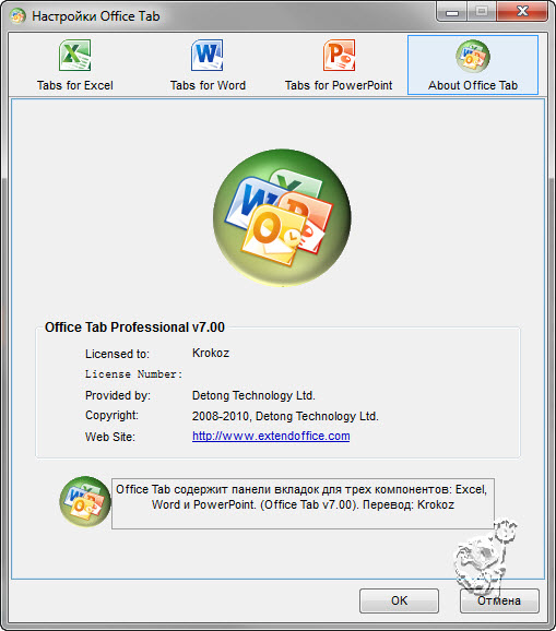 Скачать программу Office Tab Professional 7.0 RePack by Krokoz (9,32 МБ):