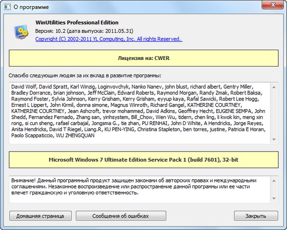 Скачать программу WinUtilities Pro 10.2 (7,22 МБ):