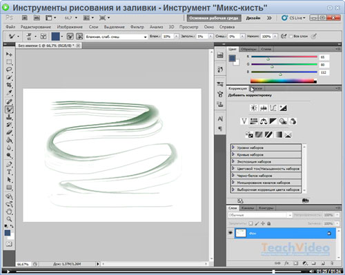 - Инструменты «Размытие», «Резкость» и «Палец»