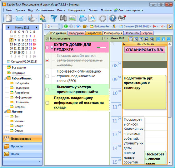 - Ежедневник. LeaderTask - органайзер для планирования повседневных задач, используйте его в роли ежедневника для управления задачами.