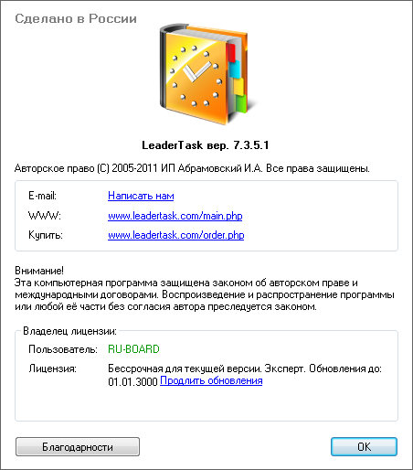 Скачать программу LeaderTask 7.3.5.1 (12,41 МБ):