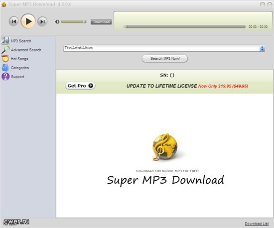 Скачать программу Super MP3 Download 4.6.9.6 (8,3 МБ):