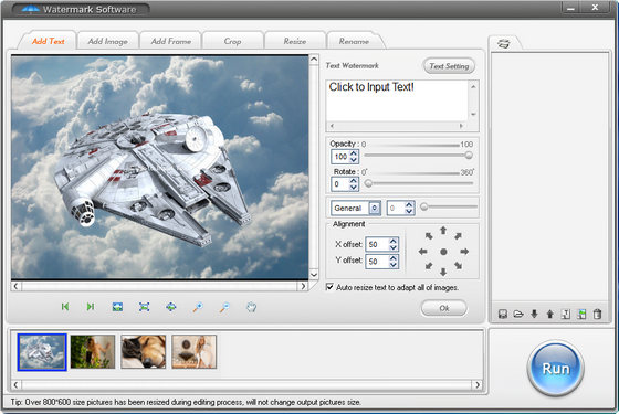Watermark Software - программа для наложения водяных знаков на изображения. С помощью данной программы можно добавлять текст, графику и логотипы на картинки для защиты от копирования. Кроме нанесения водяных знаков, данная программа позволит, добавлять рамки к вашим фотографиям, обрезать фотографии, переименовывать несколько файлов в пакетном режиме, изменять размер изображений и многое другое. Данная программа обладает быстрой обработкой фотографий и имеет поддержку всех популярных графических форматов. Программа имеет приятный и легкий в использовании пользовательский интерфейс.