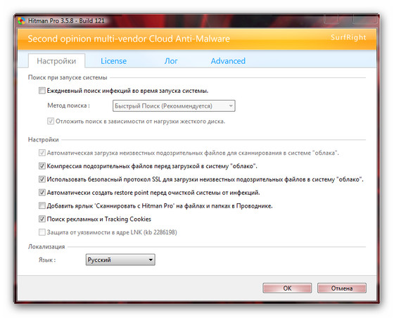 Hitman Pro - мощный сканер для выявления различных вредоносных программ. Особенность Hitman PRO в том, что он использует при проверке базы данных других приложений для обнаружения и удаления шпионских модулей (Ad-Aware SE Personal, Spy Sweeper, Spybot Search & Destroy, CWShredder, SpywareBlaste, Spyware Block List, Sysclean Package, SuperDAT VirusScan).