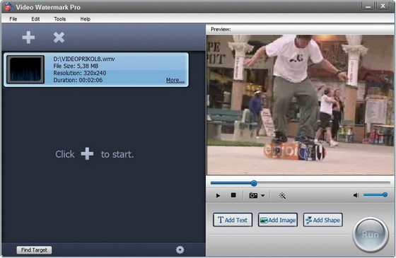 Video Watermark Pro - позволит вам добавлять текст, изображения, анимации, формы или логотипы к любым видеофайлам в пакетном режиме. Программой очень просто пользоваться, у нее удобный интерфейс и высокая скорость работы, так что накладывать водяные знаки вам будет действительно удобно и легко. Всего пара щелчков мышью и никакого ожидания. Это идеальное решение для защиты ваших видео файлов.