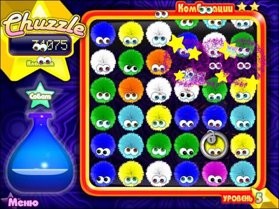 Сhuzzle – это забавные разноцветные мохнатые глазастые шарики. Единственное их предназначение в жизни – весело взрываться! И это происходит каждый раз, когда рядом оказывается больше двух шариков одного цвета. В игре есть четыре режима: классический, скоростной, дзен и мозгокрут. А также веселая музыка, множество уровней, зал славы и море хорошего настроения!